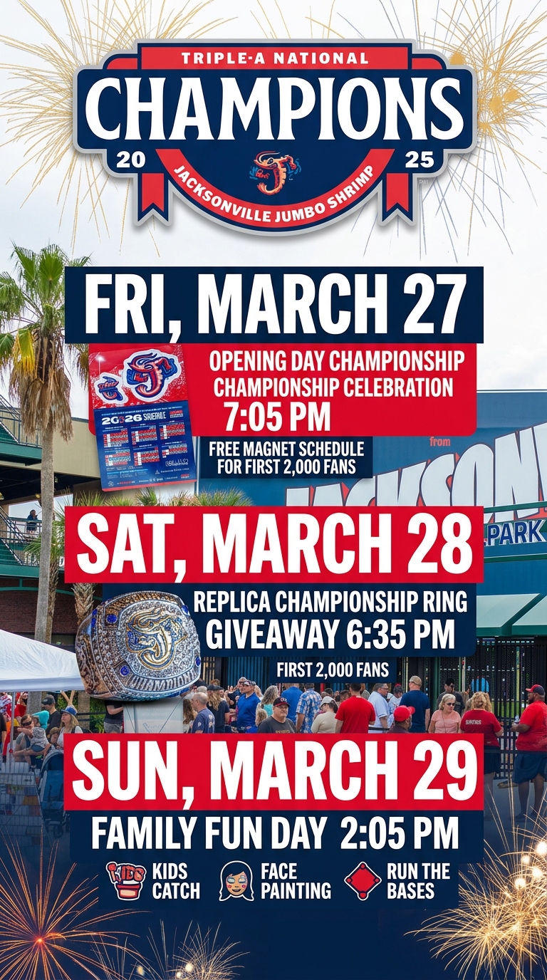 For families, baseball fans, and anyone searching for affordable things to do in Jacksonville, this opening weekend offers a strong mix of local entertainment and family-friendly fun. Ticket promotions highlighted by local media note prices starting at five dollars, which adds to the weekend’s appeal.